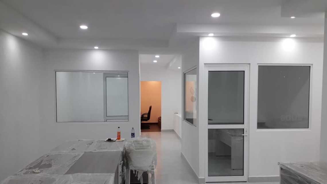 Se diseño y se construyeron oficinas encima de un mezanine con vigas de acero y vaciado de concreto, se utilizo tabla roca para muros y cielos, canceleria, instalaciones eléctricas, mini split, iluminación y colocación de piso.