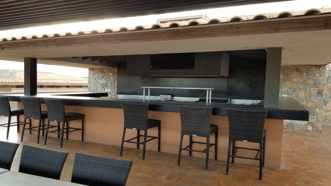 En esta área se fabrico la barra de granito negro santo domingo, piso de cantera tipo madera con sellador húmedo, molduras de cantera tabaco y mesas de granito.